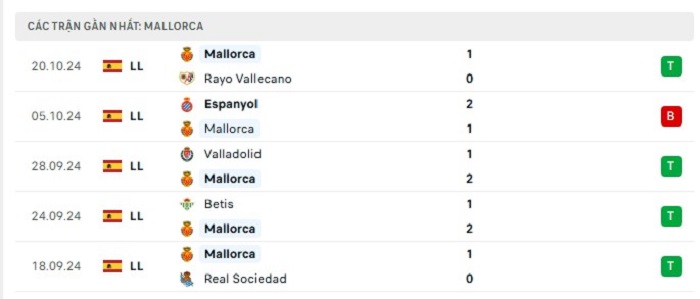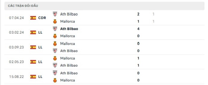 Bảng bóng đá trận đấu Mallorca vs Athletic Bilbao