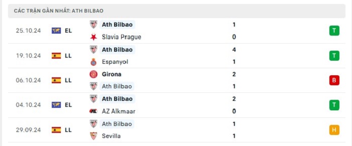 Phong độ gần đây Mallorca vs Athletic Bilbao