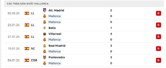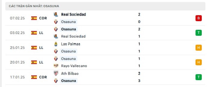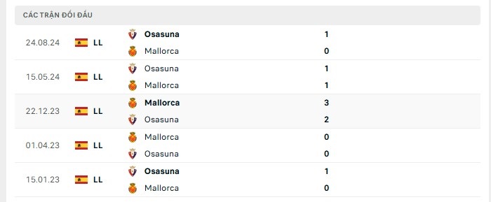 Bảng bóng đá trận đấu Mallorca vs Osasuna