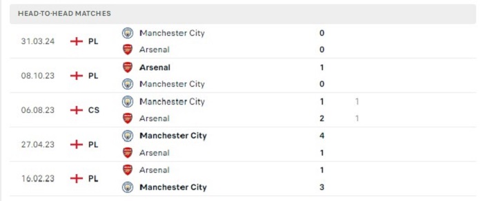 Bảng bóng đá trận đấu Manchester City vs Arsenal