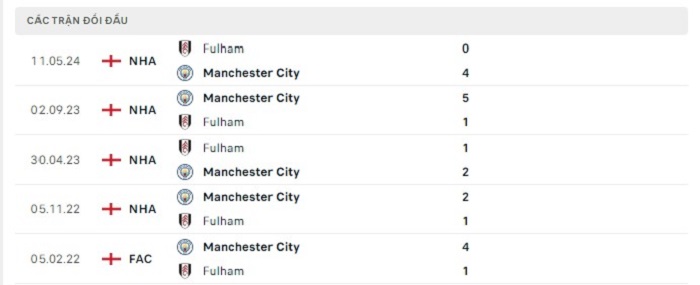 Manchester City vốn cũng đã cho thấy thực lực vượt trội của mình trước Fulham, điều này nhận thấy được ở 10 trận đối đầu trong quá khứ của hai đội thì Manchester City có được thành tích toàn thắng trước đối thủ này, điều này cũng có thể thấy được sức mạnh toàn diện của họ trước đại diện bóng đá London trong nhiều năm qua, do vậy mà với lợi thế sân nhà ở vòng đấu tiếp theo này với Manchester City thì một thắng lợi theo mốc kèo châu Âu cũng không phải là nhiệm vụ quá khó khăn với họ.
