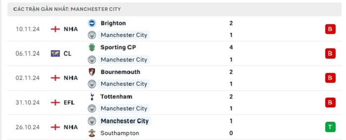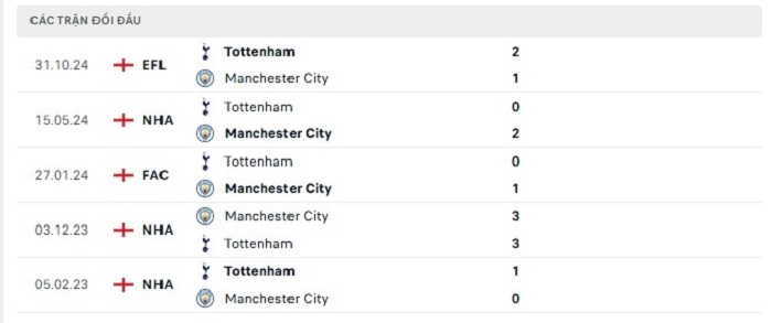 Bảng bóng đá trận đấu Manchester City vs Tottenham