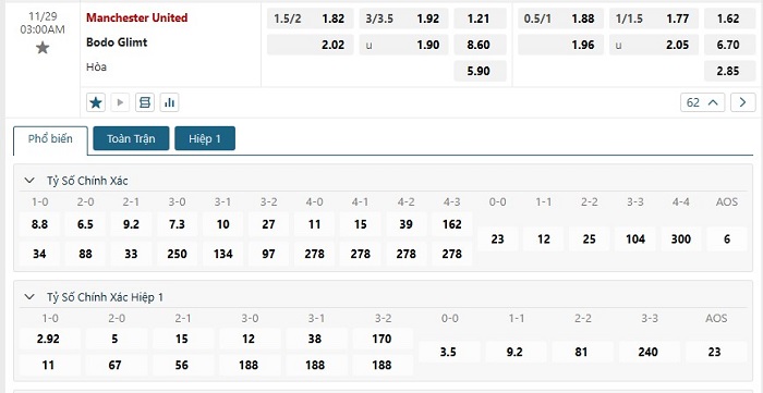 Soi kèo tỷ số Manchester United vs Bodo Glimt