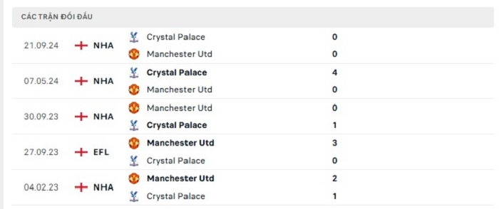 Bảng bóng đá trận đấu Manchester United vs Crystal Palace