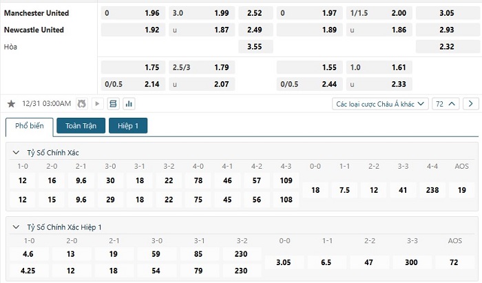 Soi kèo châu Á, kèo chấp Manchester United vs Newcastle