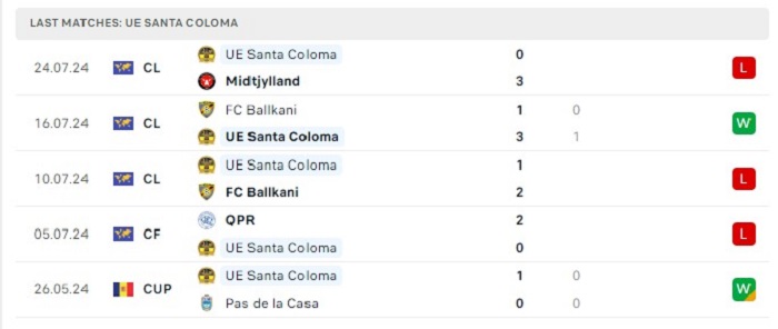 Trên thực tế 10 trận gần đây nhất của Santa Coloma tại mọi đầu trường thì có tới 8 trận đấu chỉ có từ 2 bàn trở xuống và 2 trận đấu đạt mốc 3 bàn, có thể thấy được họ cũng tạo nên được lối chơi khá chắc chắn cho mình thời gian trước đó, trận đấu sắp tới của hai đội sẽ khó có thể xuất hiện được tỷ số cao ghi được trong trận bởi Midtjylland nhiều khả năng cũng chỉ ra sân với đội hình đa phần là cầu thủ dự bị của mình sẽ phần nào ảnh hướng tới khả năng ghi bàn của trận đấu.
