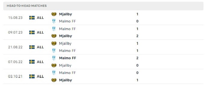 Những lần gặp nhau giữa Mjallby và Malmo FF trong quá khứ tỷ lệ ghi bàn cũng không thực sự cao, thống kê 10 trận gặp nhau gần đây chỉ có 2 trận đấu có nhiều hơn 2 bàn thắng ghi được trong trận. Cả Mjallby và Malmo FF đều có hàng thủ thi đấu tốt ở giải đấu cũng chính là có sở để có thể đặt niềm tin vào một trận đấu có ít bàn thắng ghi được .