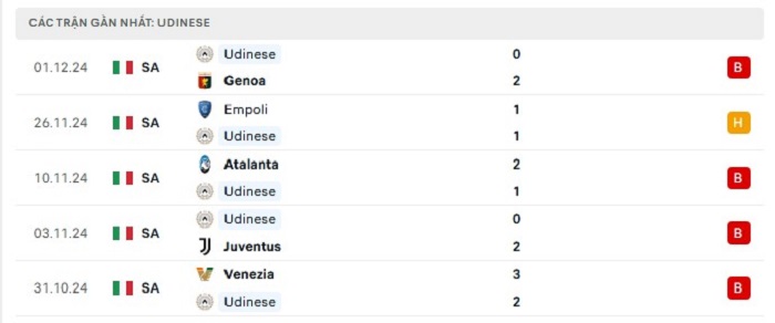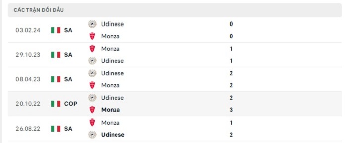 Bảng  bóng đá trận đấu Monza vs Udinese