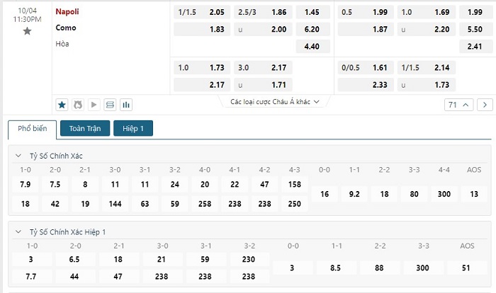 Soi kèo châu Á, kèo chấp Napoli vs Como