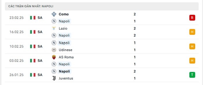 - Phong độ Napoli
