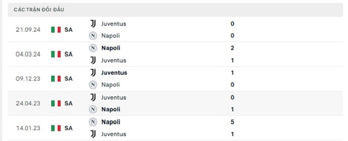 Bảng bóng đá trận đấu Napoli vs Juventus
