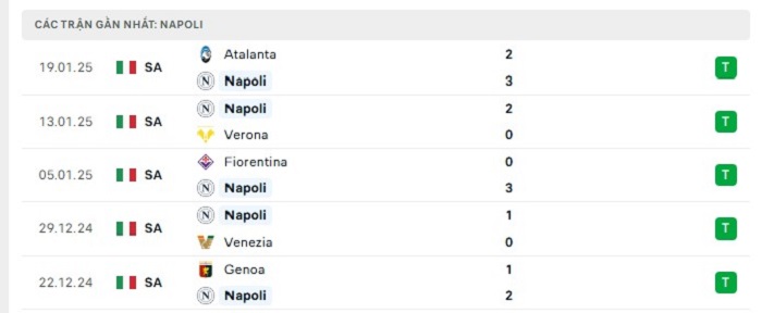 - Phong độ Napoli