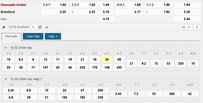 Soi kèo tài xỉu Newcastle United vs Brentford