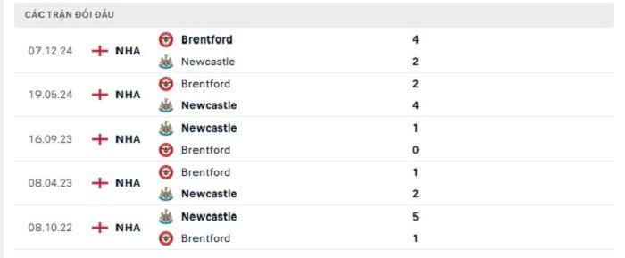 Bảng bóng đá trận đấu Newcastle United vs Brentford