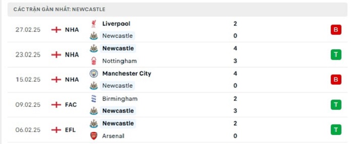 Bảng bóng đá trận đấu Newcastle United vs Brighton
