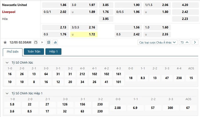 Soi kèo tỷ số Newcastle United vs Liverpool