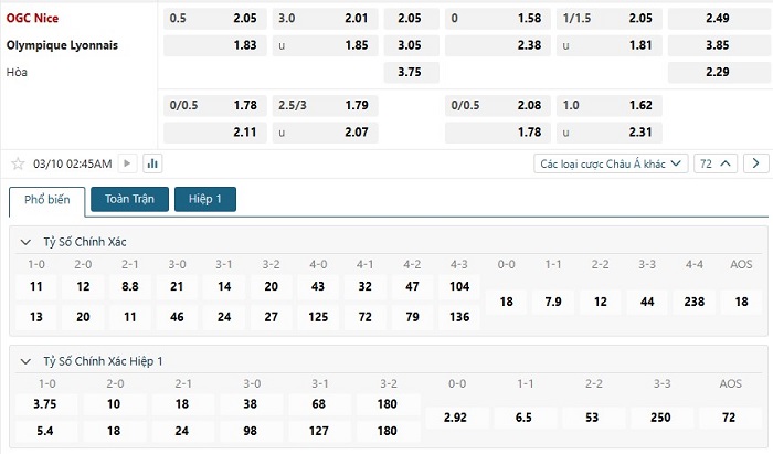 Với màn thể hiện ấn tượng ở mùa giải hiện nay giúp Nice đang là cái tên được đánh giá cao trước Lyon trên phương diện kèo châu Á, điều này cũng không quá bất ngờ bởi thực lực của hai đội trong quá khứ cũng không có quá nhiều chênh lệch với nhau, hiện tại với Nice họ có điểm mạnh sân nhà trong khi đó với đội khách Lyon thì phong độ trên sân khách ở giải đấu đang thể hiện khá thất thường, do vậy mà đây sẽ là cơ hội tốt để đội chủ nhà tiếp tục phát huy thực lực của mình trước đối thủ này.