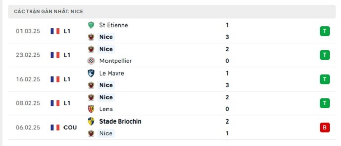 Trên sân nhà trong quá khứ Nice ít nhiều cũng có được những thành công trước Lyon, cụ thể là họ thắng 2 trong 3 lần đón tiếp đối thủ này theo mốc kèo châu Âu cả trận. Mùa giải năm nay với Nice họ có phong độ đang bất bại trên sân nhà với 8 trận thắng kèo châu Âu đã thu về được, điều này cho thấy được điểm mạnh rất lớn của Nice khi được thi đấu tại tổ ấm của mình, chính bởi vậy mà có thể kỳ vọng tới một chiến thắng của đội chủ nhà ở vòng đấu sắp tới của mình.