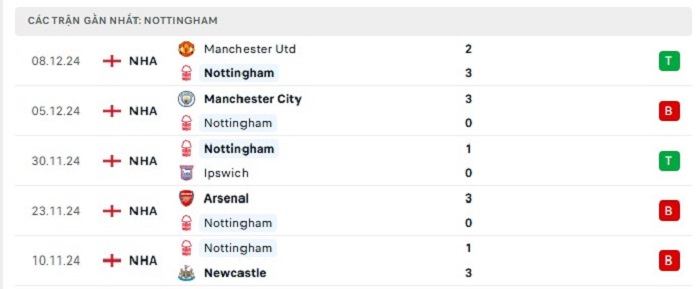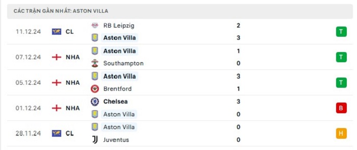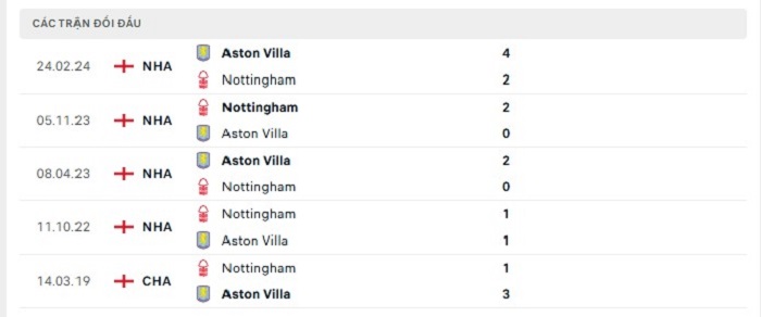 Bảng bóng đá trận đấu Nottingham vs Aston Villa