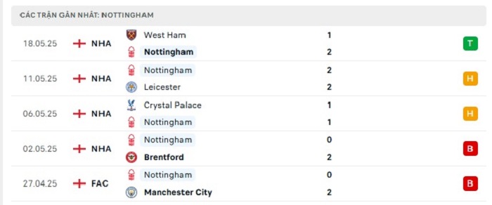 Phong độ gần đây Nottingham vs Chelsea