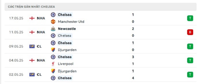 - Phong độ Chelsea