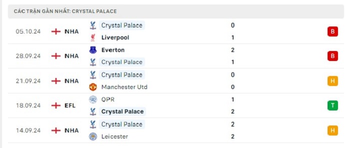 Bảng bóng đá trận đấu Nottingham vs Crystal Palace