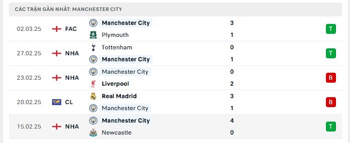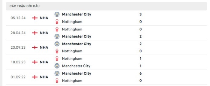 Bảng bóng đá trận đấu Nottingham vs Manchester City