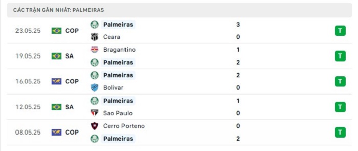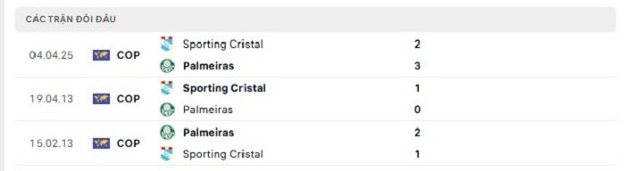 Phong độ gần đây Palmeiras vs Sporting Cristal