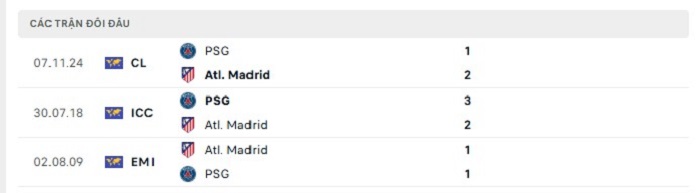 Trong quá khứ giữa Paris Saint Germain và Atletico Madrid cũng có những mặt khá cân bằng với nhau, cụ thể 3 lần gặp nhau trước đây thì mỗi bên đã có cho mình được 1 chiến thắng theo kèo châu Âu cả trận. Tại sân chơi Champions League mùa này trong hành trình lên ngôi vô địch của mình Paris Saint Germain cũng từng phải nhận thất bại trước Atletico Madrid, bởi vậy mà lần gặp nhau này của hai đội cũng sẽ khó có thể bất phân thắng bại theo kèo châu Âu được niêm yết