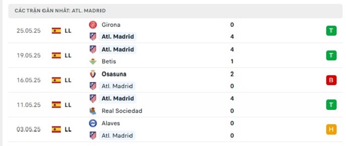 Phong độ gần đây Paris Saint Germain vs Atletico Madrid