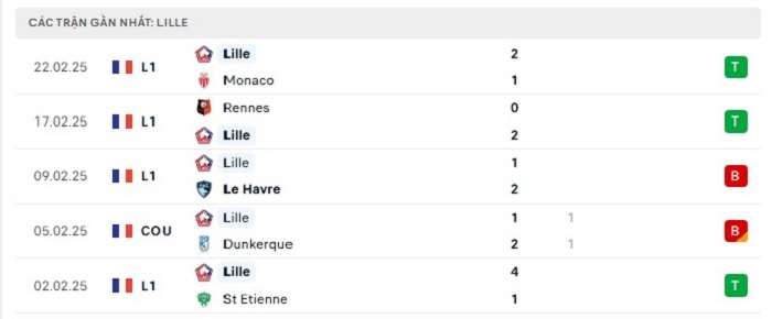 Bảng bóng đá trận đấu Paris Saint Germain vs Lille