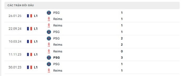 Lịch sử đối đầu của Paris Saint Germain vs Reims