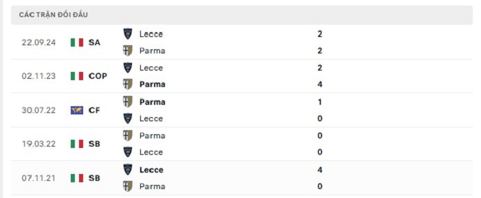 Parma vốn cũng đã có được không ít những thành công trước Lecce trong quá khứ, bằng chứng chính là 10 lần gặp nhau gần đây của hai đội thì Parma có tới 6 chiến thắng theo kèo châu Âu trong khi Lecce chỉ thắng 2 và hoà 2. Mùa này trên sân khách thì Lecce nhận tới 8 thất bại qua 11 vòng đấu có thể thấy được mỗi khi hành quân xa nhà vẫn chính là yếu điểm lớn nhất với họ. Bởi vậy mà với điểm tựa sân nhà đang có được hiện tại với Parma sẽ là cơ hội để họ có thêm một thắng lợi.