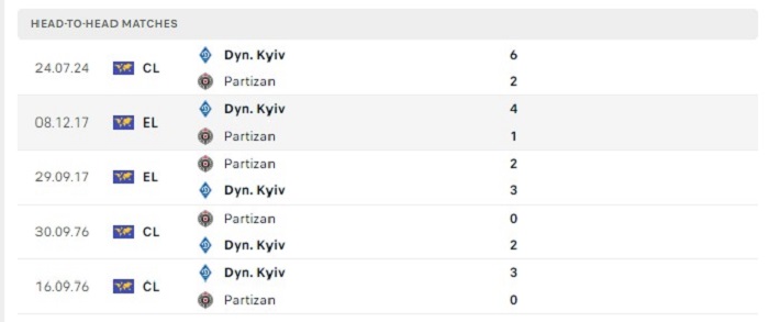 Các lần gặp nhau giữa Partizan Belgrade và Dynamo Kyiv vốn diễn ra cũng rất kịch tính và hấp dẫn với nhiều bàn thắng ghi được, điều này cũng đã được thấy rõ qua lối chơi rất phóng thoáng của cả hai đội trong trận lượt đi vừa qua của mình. Trận lượt về sắp tới cũng vì vậy mà hứa hẹn có thể xuất hiện tỷ số cao cho cả hai đội khi mà yếu tố và kết cục của trận đấu cũng đã gần như đã an bài.