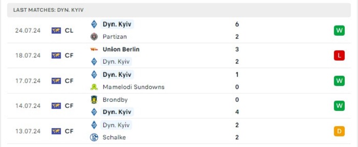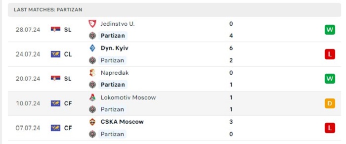 Phong độ gần đây Partizan Belgrade vs Dynamo Kyiv