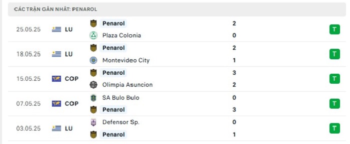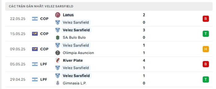 Phong độ gần đây Penarol vs Velez Sarsfield