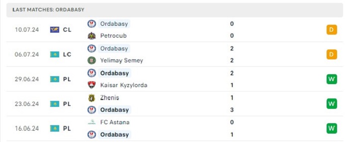 Phong độ gần đây Petrocub vs Ordabasy