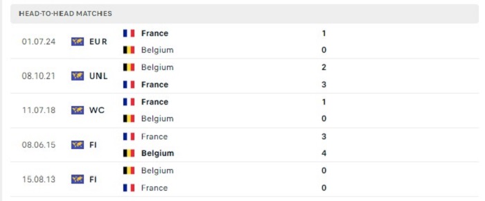 Có thể thấy được những thành công của Pháp trước Bỉ trong nhiều năm qua, bằng chứng chính là 7 lần gặp nhau của hai đội thì Pháp thắng 4, hoà 2 và chỉ thua 1. Trong 3 lần gặp nhau gần nhất của hai đội Pháp cũng toàn thắng theo kèo châu Âu trước Bỉ có thể thấy được khả năng và sức mạnh của họ, bởi vậy mà với điểm tựa tinh thần về mặt sân nhà ở lần gặp nhau này thì việc Pháp có được một thắng lợi theo kèo châu Âu cũng không phải là nhiệm vụ không thể làm.