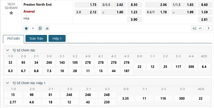 Thống kê trong 3 lần gặp nhau giữa Preston và Arsenal trước đây cũng đều đã xuất hiện tỷ số ghi được trong trận từ 3 bàn thắng trở lên, điều này cũng có thể nhận thấy được giữa hai đội cũng tạo nên được lối chơi phóng thoáng, hơn nữa sức mạnh hàng công của Arsenal trước các đối thủ dưới cơ của mình cũng đã được thể hiện với 5 bàn thắng ở vòng đấu trước đó của mình, đây cũng là lý do quan trọng để có thể đặt niềm tin vào một trận đấu bùng nổ về mặt tỷ số của cả hai đội.
