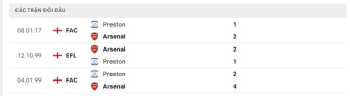 Lịch sử đối đầu của Preston vs Arsenal