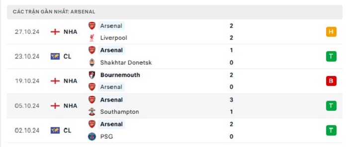 • Phong độ Arsenal