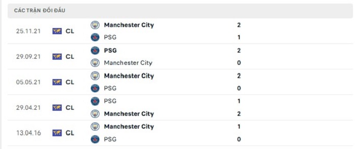 Trong quá khứ PSG gặp không ít những khó khăn trước Manchester City, cụ thể là họ chỉ thắng 1, hoà 2 và thua 4 trước đại diện bóng đá Anh theo mốc kèo châu Âu ở những lần gặp nhau trước. Tuy nhiên với PSG hiện tại họ vẫn đang có được phong độ đầy ấn tượng trên sân nhà với thành tích bất bại 9 vòng đấu tại đấu trường quốc nội cho thấy sự ổn định đáng kể của họ, bên phía Manchester City thì như đã nói tinh thần và sự hưng phấn của họ không còn được như những mùa giải gần đây, do vậy mà khả năng thắng kèo châu Âu của PSG cũng được kỳ vọng hơn.