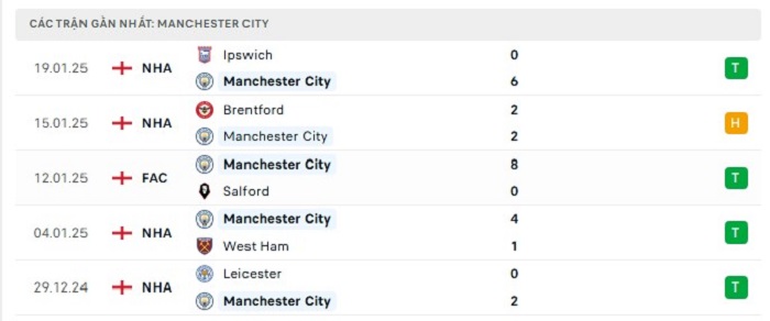 - Phong độ Manchester City