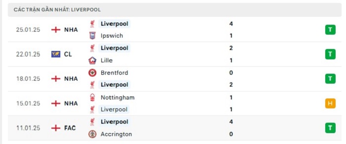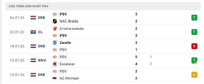 Phong độ gần đây PSV Eindhoven vs Liverpool