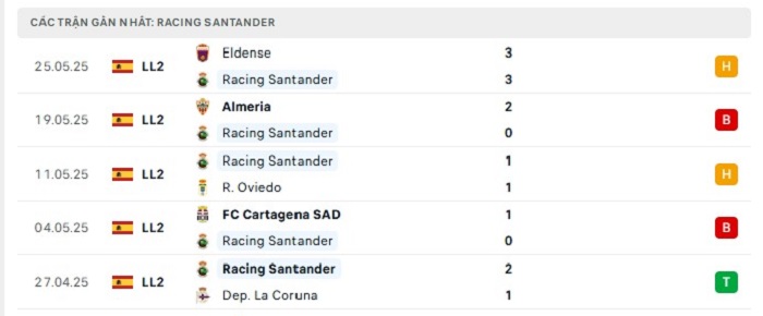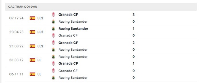Thành tích trong quá khứ không hề đứng về phía Racing Santander, trong 5 lần gặp Granada gần đây thì thành tích tốt nhất mà đội chủ nhà có được chỉ là 1 trận thắng, 1 hoà và thua 3 trận đấu theo kèo châu Âu được niêm yết. Hiện tại với Racing Santander đang có được lợi thế sân nhà làm điểm tựa nhưng với Granada về mặt phong độ của họ đang thể hiện cũng không hề tồi, do vậy mà khả năng chia điểm của hai đội ở lần gặp nhau này cũng trở nên khả quan nhiều hơn.