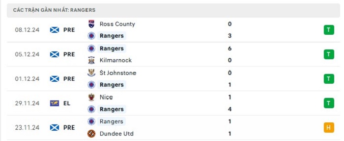 Bảng bóng đá trận đấu Rangers vs Tottenham