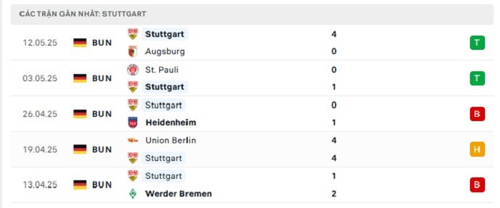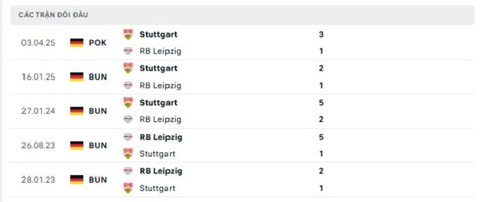 Phong độ gần đây RB Leipzig vs Stuttgart