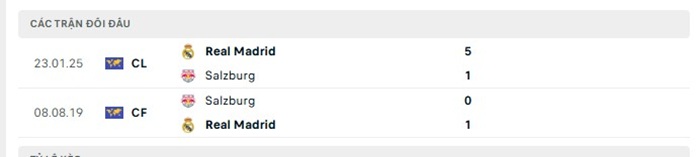 Thống kê trong quá khứ với RB Salzburg họ cũng có không ít những lần gặp khó trước Real Madrid, thật vậy khi mà 2 lần gặp nhau gần nhất thì đội bóng nước Áo toàn thua theo kèo châu Âu trước đối thủ đã thấy được thực lực và sự chênh lệch của hai đội, ngay cả tại mùa giải năm nay ở sân chơi Champiosn League thì RB Salzburg cũng đã đón nhận một thảm bại trước đội bóng Hoàng gia Tây Ban Nha, chính vì vậy mà với khả năng hiện tại việc RB Salzburg có thể tạo nên được bất ngờ trước Real Madrid là điều thực sự khó.