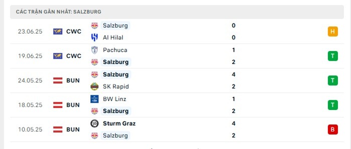 Phong độ gần đây RB Salzburg vs Real Madrid