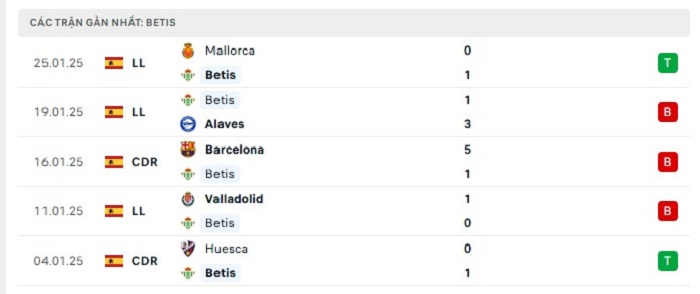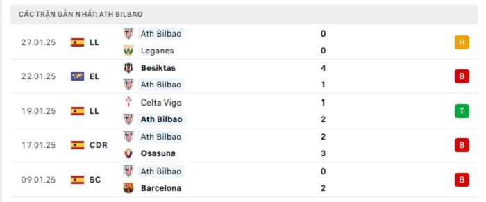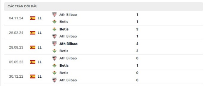Phong độ gần đây Real Betis vs Athletic Bilbao